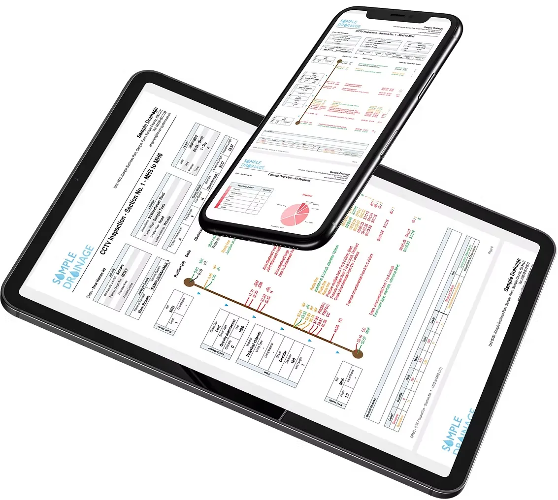 Our system works with OSGM15 coordinate data, allowing us to produce maps that integrate seamlessly with national mapping standards. Once all site data has been collected, we generate a comprehensive digital report tailored to your requirements — clearly displaying your drainage layout, flow directions, and asset details.